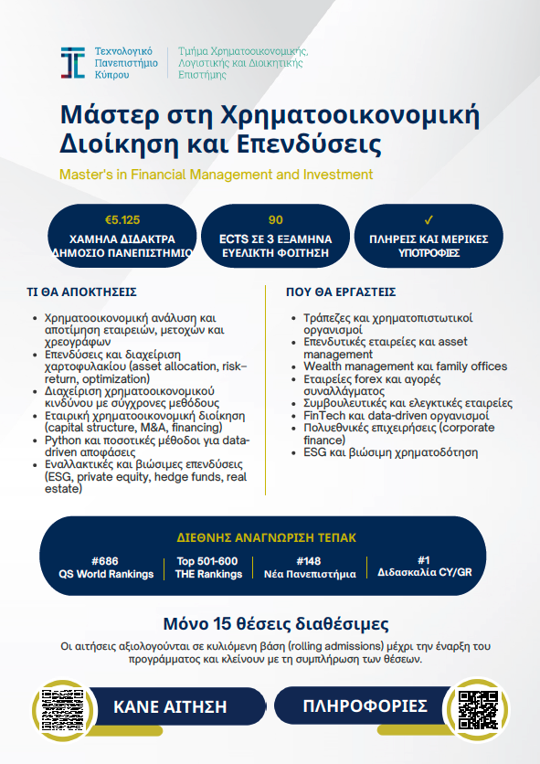 The programme is offered by the Cyprus University of Technology (CUT), a public university recognized and valued by employers and organizations both in Cyprus and internationally.